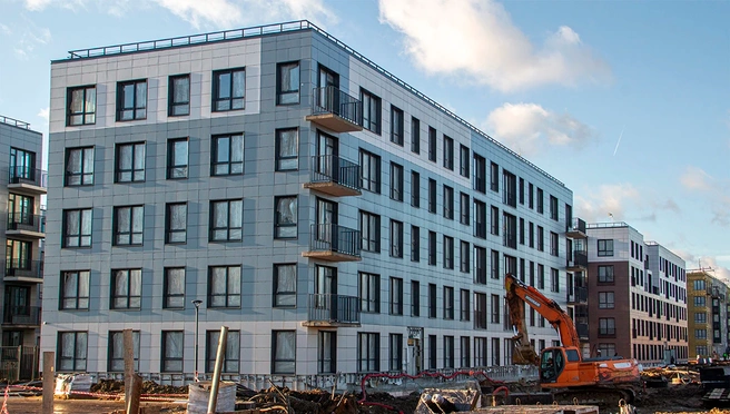 В корпусах первой очереди (№ 1-3) почти полная готовность. Завершено благоустройство, смонтированы индивидуальные тепловые пункты, подведена канализация, электричество и водоснабжение. Сети на этапе проверки штатного функционирования. Итоговая проверка первых трех жилых домов PLUS Пулковский государственным строительным надзором запланирована на ноябрь 2025 года.