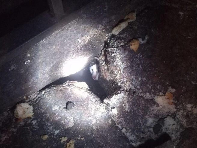 Кот выглянул лишь во вторник вечером. К месту приехали спасатели, но вызволить хвостатого не удалось. Он снова спрятался.