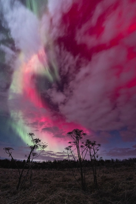 «Очень вероятным является продолжение текущего геомагнитного события до конца сегодняшнего дня и, соответственно, возвращение зоны сияний вечером обратно в восточное полушарие, но уже, к сожалению, не с такими исключительно редкими характеристиками», — отмечают в лаборатории.