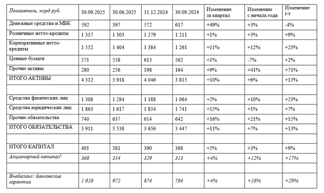 Ключевые финансовые показатели за девять месяцев 2025 года (на 30 сентября 2025 года)