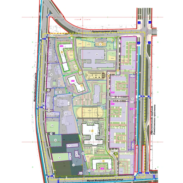 В разработанном проекте планировки северную часть территории занимают жилые дома: один из них высотой от 3 до 12 этажей с подземным паркингом и встроенным детским садом, восточнее, ближе к Измайловскому бульвару — уже 9-, 15-, 19-этажные дома. Жилая застройка протянулась по всей восточной границе и станет фасадом бульвара.