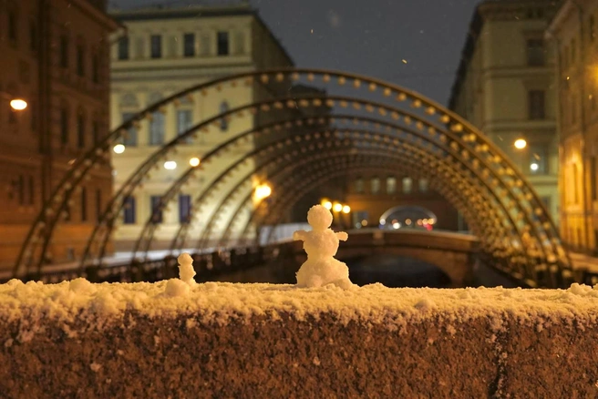 В выходные Петербург встретил первый ноябрьский снег. К вечеру субботы стали появляться белые фигуры разного роста: улицы города украсили снеговики. Фотографиями символов зимы с «Фонтанкой» поделились читатели.