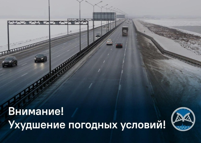 К «желтому» уровню опасности в Петербурге добавился снег, ухудшающий видимость. Водителей на дамбе призывают быть особенно осторожными.
