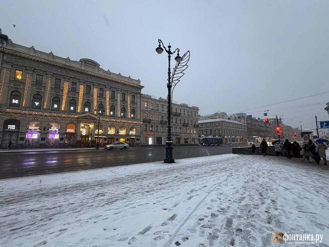 Снегопад в Петербурге продолжается несколько часов, и рассвет 24 ноября город встречает в белом.