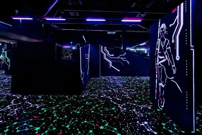 Арена включает три игровые зоны: лазертаг-арену, VR-комнату с командными миссиями и отдельную VR-аркаду. В играх могут участвовать до 30 человек одновременно. Пространство оформлено в футуристическом стиле, с неоновыми подсветками и спецэффектами. Гостей также ждут прохладительные напитки и лаунж-зона для отдыха.