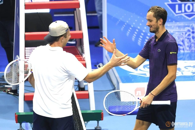 Даниил Медведев уверенно начал выступление на теннисном турнире «Трофеи Северной Пальмиры», обыграв нидерландца Таллона Грикспора. Матч завершился со счётом 4:3, 4:2, 5:3 (13:8), а общий счёт команд — 33:23 в пользу «Сфинксов», за которых играет россиянин.