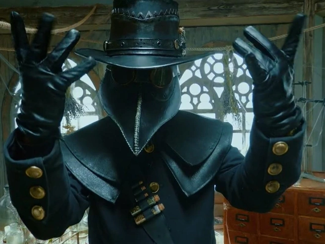 Инстасамка за всю передачу ни разу не сняла солнечные очки, даже когда пришлось пролетать на тросе над двором форта и надевать на голову хоккейный шлем, защищающий от стрел. Зато она с легкостью расколола загадку Чумного доктора: «Есть у зла, но нет у добра. Дерево без него упадет, слово без него не живет». Певица дала правильный ответ — «корень».