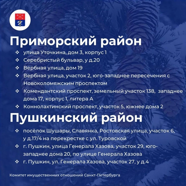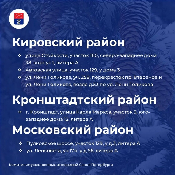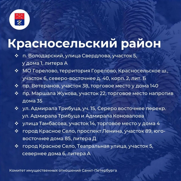 Пока что без легальных базаров остаются Центральный, Адмиралтейский, Курортный и Петроградский районы. По ним договоров на продажу ёлок на данный момент нет. Но ближе к 20 декабря ситуация может измениться, пояснили в комитете.