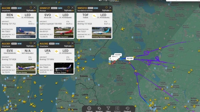 Воздушная опасность действует в Ленинградской области с начала пятого. Губернатор Александр Дрозденко сообщил, что в Лужском районе сбиты «несколько БПЛА». По данным Минобороны, в области уничтожено два беспилотника. Однако до этого ограничений на прием и отправку самолетов в Пулково не вводилось.