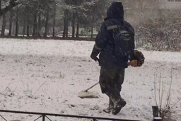 Коммунальщики вышли на покос травы в снегу в Петербурге