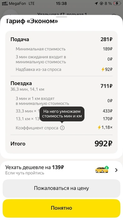 Тем не менее таксисты в последнее время также находят повод пожаловаться на работу своих сервисов: им кажется, что коэффициенты им занижают. И сейчас якобы почти невозможно получить заказ, где базовый тариф умножался бы больше, чем на 3, не говоря уже о прежних заоблачных коэффициентах. Попытки разобраться, почему так дешево, наталкиваются на железные аргументы, с которыми не поспоришь: бездушная машина все считает правильно.