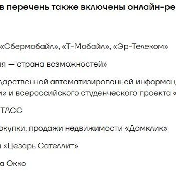 В середине ноября «белый список» обновили. Туда добавили сервисы «Почты России», такси «Максим», навигатор 2ГИС и другие. А позже в перечень попали ресурсы Центробанка, «Россия — страна возможностей», онлайн-кинотеатр «Окко», сервис «Домклик», а также ТАСС и ряд других СМИ.