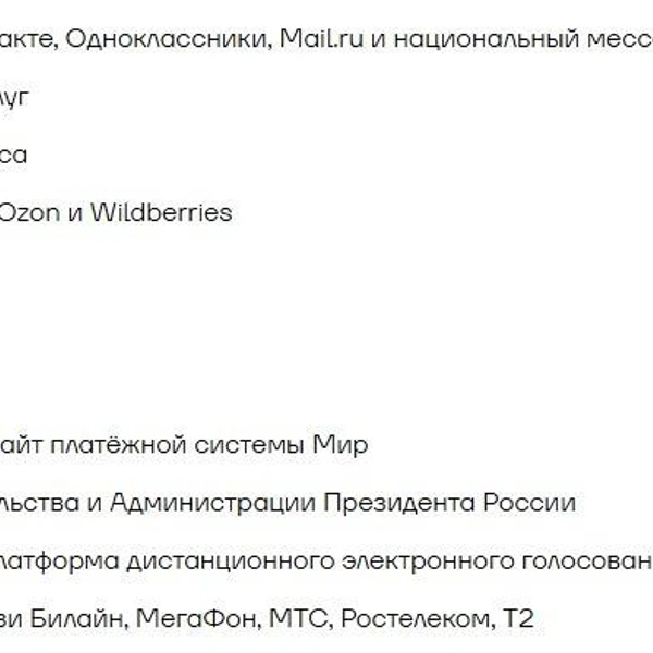 Так, на фоне перебоев мобильного интернета должны работать госсайты, соцсети «ВКонтакте» и «Одноклассники», MAX, маркетплейсы Ozon и Wildberries, сервисы «Яндекса», «Магнита» и Mail.ru, а также Avito, Rutube, «Кинопоиск», 2GIS и Альфа-банк.