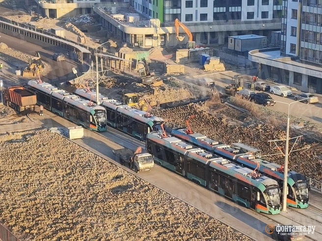 По меньшей мере четыре трамвая заметили на обкатке линии Купчино — Шушары — Славянка на строящемся Старорусском проспекте в Шушарах. Об этом 14 декабря рассказал «Фонтанке» наш читатель.