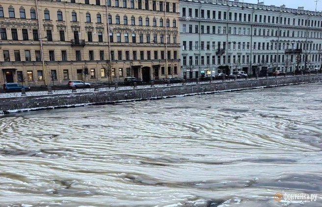 Выпавший в городе снег принес первые признаки ледостава. Река Фонтанка покрылась снежурой почти на всей поверхности: пропитанный водой снег смешался в кашеобразную массу, которую течением сбило в живописные складки. Фото явления опубликовали в телеграм-канале проекта «ОтЛичный Петербург».