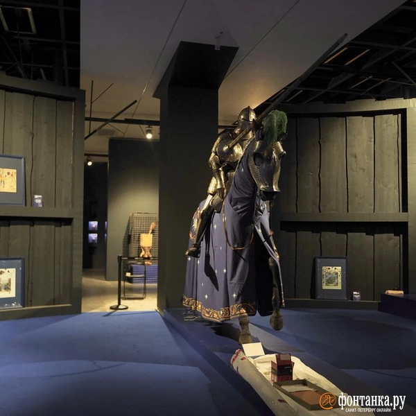 А когда выйдете, окажетесь как будто в рыцарском зале Эрмитажа, потому что «Азбука» гласит, что «Р» — это «рыцари». Две фигуры в доспехах на пластиковых конях изображают рыцарский турнир. Немного неожиданно, что «Н» — это «Нападение», и проиллюстрировано оно детской игрой.