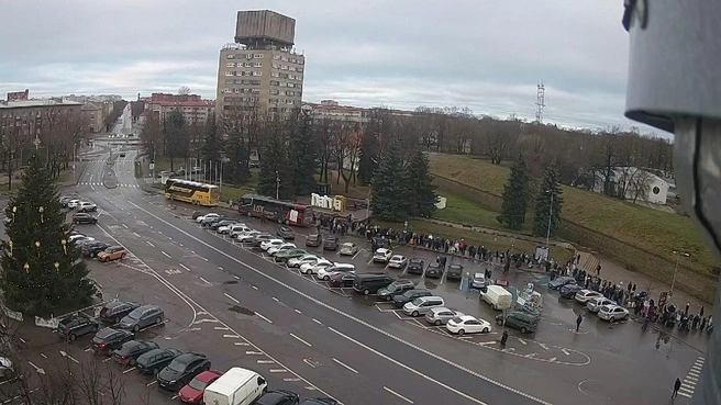 Протяженную очередь на тротуаре у пешеходного пограничного перехода в эстонской Нарве заметили с 16 декабря. Она наблюдается там и сегодня.