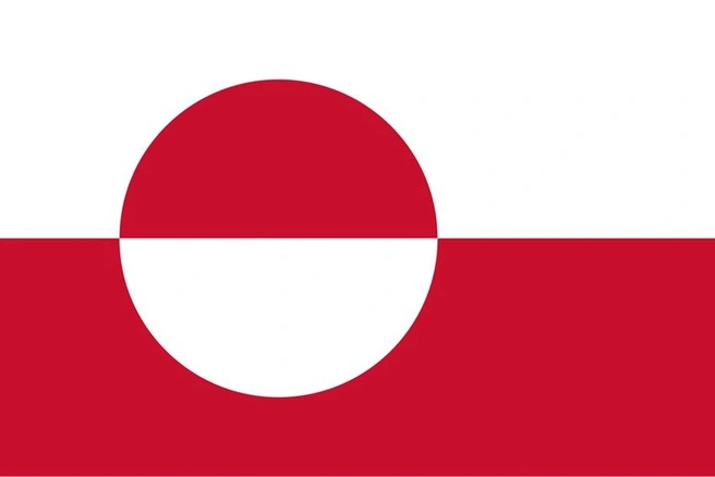 Напомним, флаг Гренландии был принят 21 июня 1985 года: это полотнище с двумя горизонтальными полосами — белой и красной, — поверх которых чуть левее от центра расположен круг, также поделенный горизонтально, но теперь сверху — красная половина, снизу — белая. Такой флаг был предложен гренландским художником и бывшим министром культуры Туэ Кристиансеном — правда, вскоре выяснилось, что точно такой же флаг был у одного из датских гребных клубов (в конечном итоге клуб дал разрешение на использование).