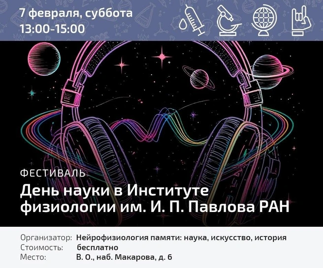 Идем 7 февраля на День науки в Институт физиологии им. Павлова РАН (В. О., наб. Макарова, д. 6). Регистрация по ссылке, начало в 13:00.