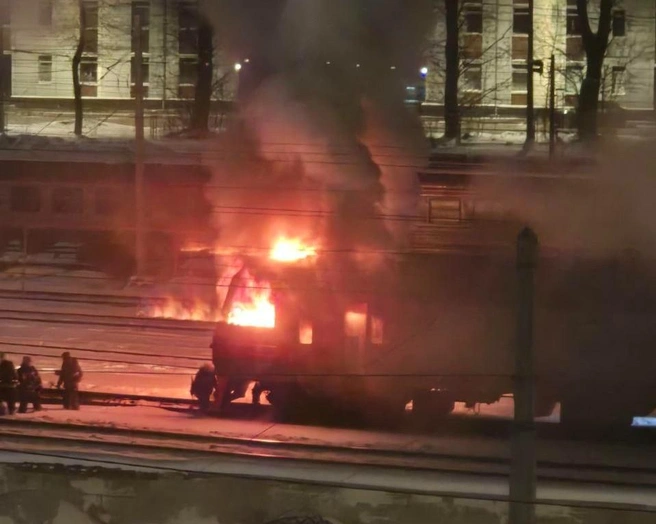 Поезд вспыхнул в отстое на Минеральной улице около полуночи. Кадрами пожара с «Фонтанкой» делились очевидцы. По их словам, на пожар прибыли не менее двух десятков сотрудников МЧС.