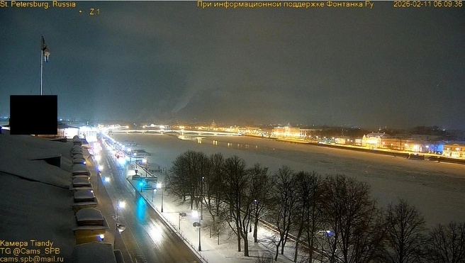 В Петербурге облачное утро, небольшой снег, мороза нет. Следующая ночь будет гораздо более холодной.