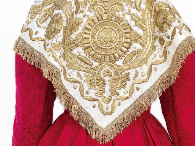 Вы узнаете, чем отличается кокошник от сороки, пестрядь — от кумача, чем расшивали очелье и пауши и увидите все этапы создания золотной вышивки.