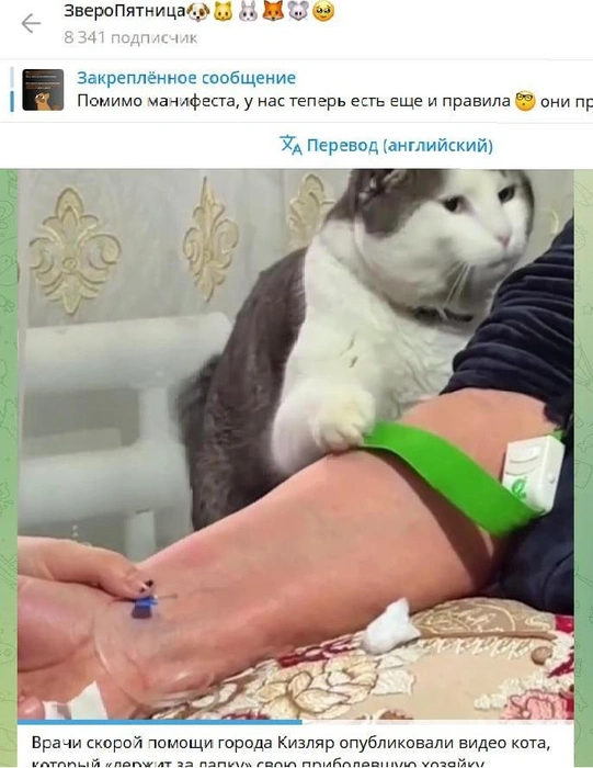 Миллионы просмотров набирает в Сети ролик про заботливого кота, сидящего рядом с хозяйкой, пока медики вводят ей лекарство.