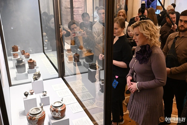 Официальный представитель МИД России Мария Захарова в качестве востоковеда и коллекционера приняла участие в открытии выставки «Керамика Исина в собраниях Петербурга и Москвы. XVII — вторая половина ХХ века» в Государственном Эрмитаже 14 февраля. Выставка в Арапском зале, иллюстрирующая возможности особых глин, добытых на месторождениях провинции Цзянсу, будет работать до 31 мая.