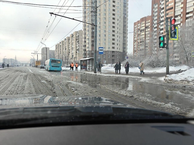 В Красногвардейском районе Петербурга утром 18 февраля залило водой один из крупных проспектов. В чем причина — выясняют.