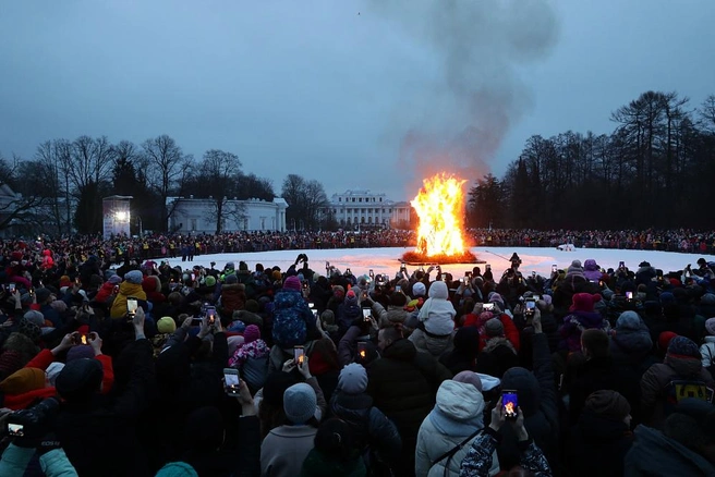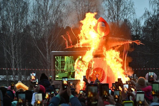 Ну и конечно, Масленицы без огня не бывает: здесь сожгут чучело куклы Морены, а потом угостятся блинчиками с чаем.