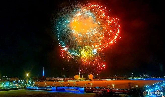 Вживую петербуржцы и туристы приходят смотреть салют на стрелку Васильевского острова или Дворцовый мост. Но для тех, кто предпочитает наслаждаться красотой фейерверков в тепле, всё с лучшего ракурса показывают супервидовые камеры «Фонтанки». И это тоже уже традиция.