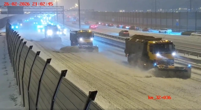 На обработку проезжей части КАД с начала снегопада израсходовали 840 тонн соли. Датчики автоматической системы метеорологического обеспечения, которые установлены в дорожном покрытии, гололеда не зафиксировали. Подрядчик приступил к уборке снежных валов и очистке знаков, отбойников, технических проходов и лотков для отвода воды.