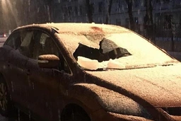 владельцу авто и просто так прохожим крупно повезло, трубы с крыши не слаще сосуль и наледи