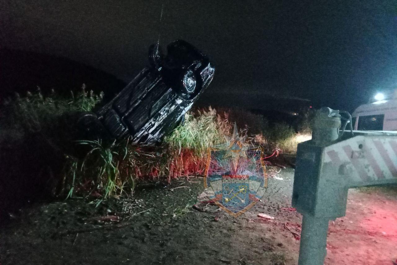 В запруде у поселка имени Свердлова спасатели ловили автомобиль экскаватором