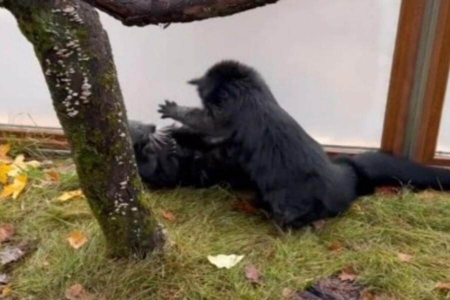 «Прыжки, кувырки, хвостатые объятия»: бинтуронги Карла и Тоши резвятся в Ленинградском зоопарке. Видео
