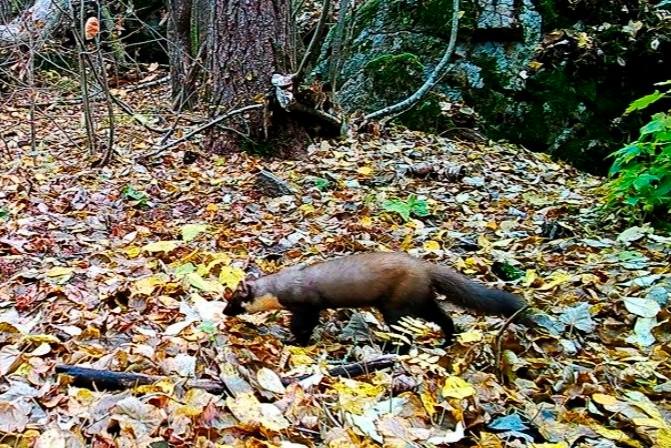 Хищник прыгал по дереву на севере Петербурга, а над ним кружила ворона. ВидеоКуницу заметили на улице Матроса Железняка