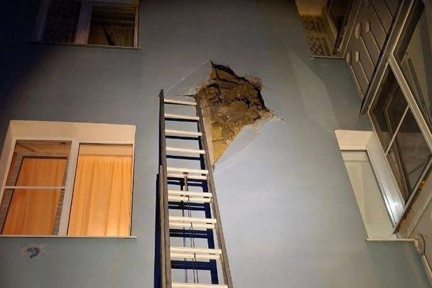В Лодейном Поле на фасаде дома появилась загадочная дыра