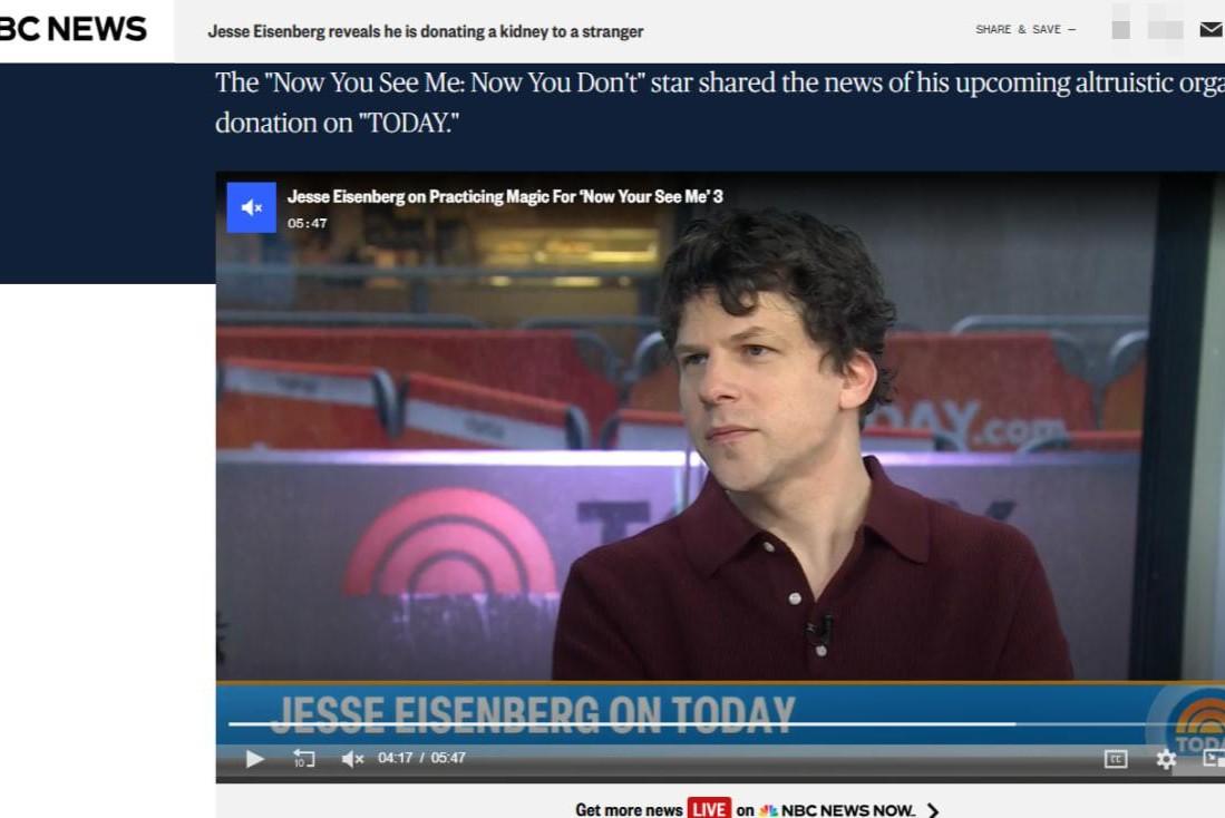 Актёр Джесси Айзенберг отдаст почку незнакомцу