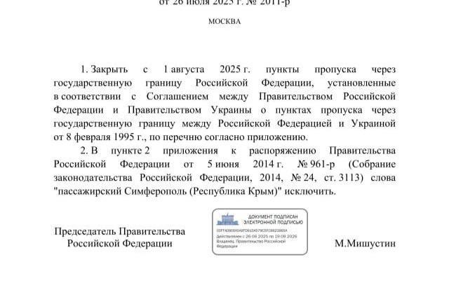 Правительство РФ постановило закрыть 20 пунктов пропуска с Украиной
