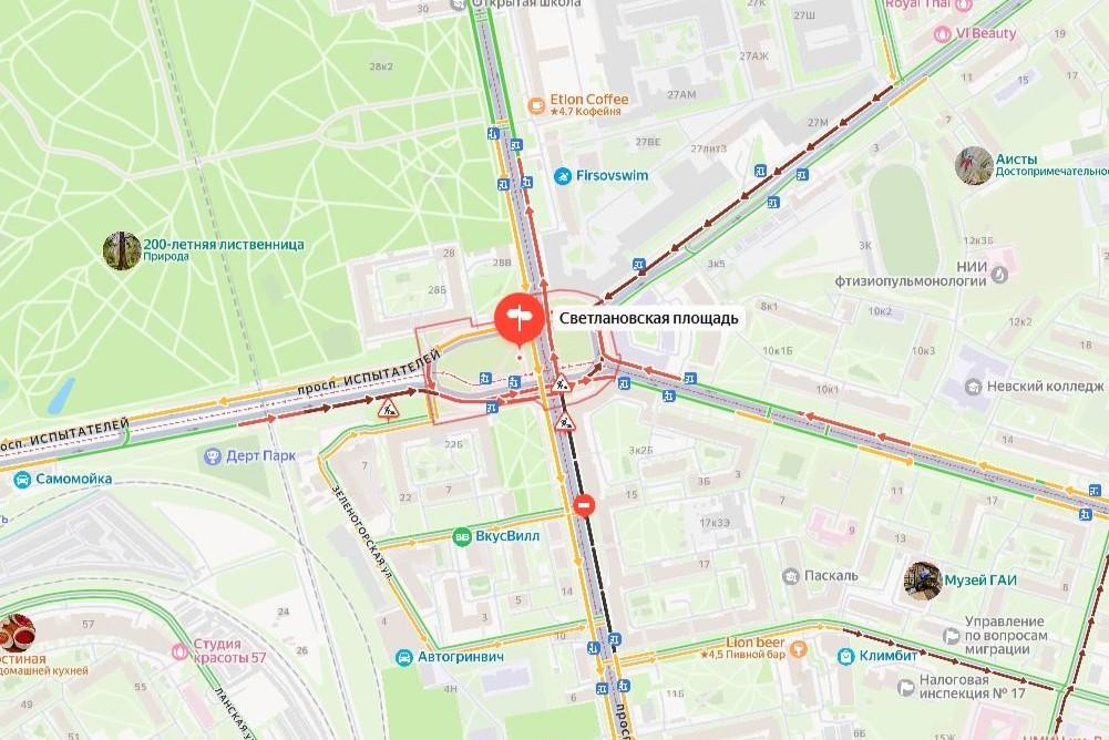 Большая дыра у Светлановской площади, где ночью провалился асфальт, нарушила движение транспорта. Латать ее будут суткиПровал асфальта нарушил движение у Светлановской площади. Из-за дорожных работ перекрыты ближайшие дороги.