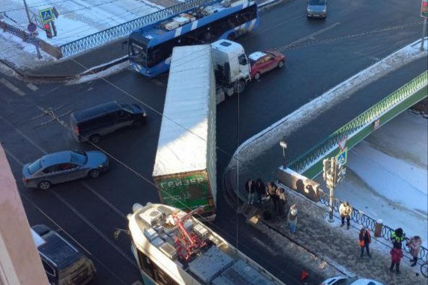 Пассажирка трамвая пострадала после удара фуры на ПетроградкеЖенщине потребовалась медицинская помощь